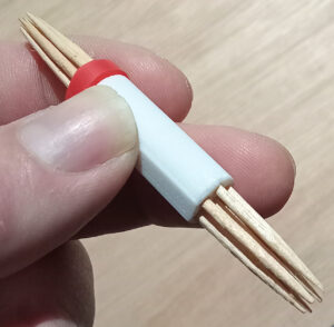 I also designed a simple tool for scoring clay when hand-building. It uses cocktail sticks slotted into a 3D-printed holder, with one end held together by silicone rubber. This creates a compact cluster of sticks that’s perfect for scratching the surface before applying slip and joining parts. The cocktail sticks last a long time, and when they wear out you can just slide them out and replace them with new ones.